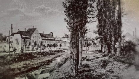 Gebäude außerhalb der Stadtmauer Heiligenstadts um 1880