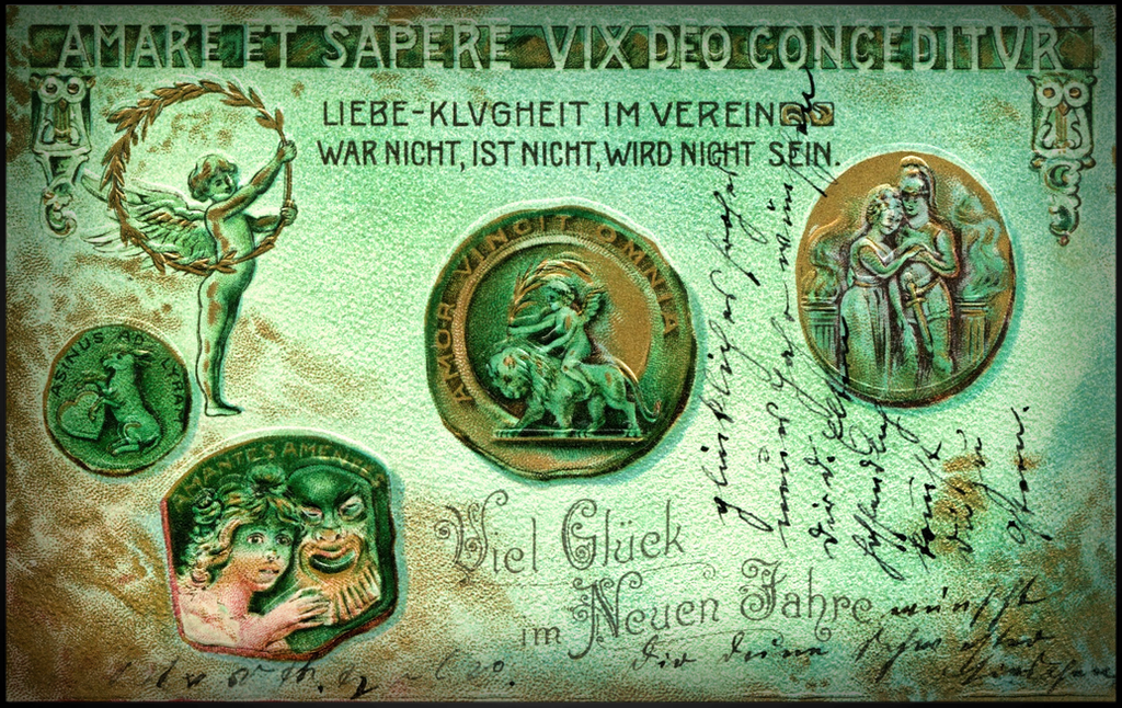 "Der Brauch, sich am Neujahrstage gegenseitig Glück zu wünschen, ist schon uralt. Bereits viele Jahrhunderte vor der christlichen Zeitrechnung waren Neujahrsgluckwünsche üblich. Das geht aus vielen Gräberfunden und auch aus anderen Feststellungen hervor. Ob sich bei Beginn eines neuen Jahres in Babylonien, Assyrien und im alten Ägypten nur die Großen und Reichen gegenseitig beglückwünschten, oder ob dies ein allgemeiner Brauch auch im niederen Volke war, wird sich allerdings kaum mehr ermitteln lassen. Die Neujahrswünsche der alten Babylonier und der alten Ägypter wurden allerdings nicht in Form von Briefen übermittelt, sondern in Form von Geschenken aller Art. Kunstgegenstände aus den verschiedensten Gebieten, Bronze-, Gold- und Silberstatuen, Schnitzereien aus Elfenbein, Waffen, zierliche Gefäße für wohlriechende Salben und Öle, kostbare Waffen und Kleider und noch anderes waren Gegenstände, mit denen man sich ein fröhliches und glückliches neues Jahr wünschte. Der Brauch, die Neujahrswünsche durch Geschenks zum Ausdruck zu bringen, übertrug sich dann auch nach Griechenland und nach Alt-Rom. Im oströmischen Reich verschenkten die Herrscher am Neujahrstage an die hohen Würdenträger, an die nächsten Verwandten und Freunde goldene Neujahrsdenkmünzen, und auch im weströmischen Reich waren derartige und noch andere Geschenke als Neujahrsglückwünsche allgemein üblich, wenigstens im weströmischen Reiche war es auch üblich, dass Untergebene ihre Vorgesetzten durch Neujahrswünsche in Gestalt von kleinen Geschenken zu erfreuen suchten.