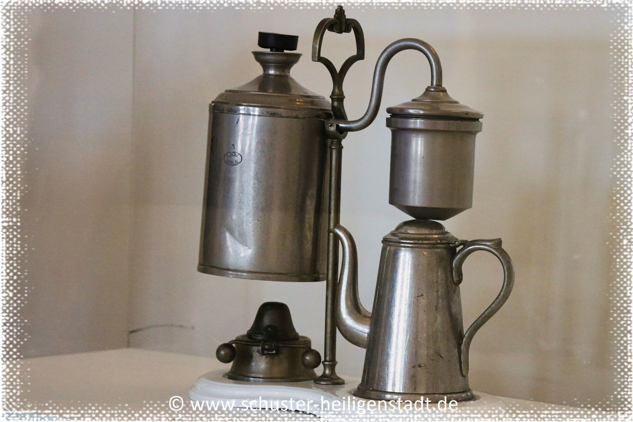 Quelle: Thüringer Tageblatt 1982 Egon Grohmann – Bild: Kaffeemaschine im Eichsfeldmuseum Heiligenstadt © Thomas Schuster Heiligenstadt
