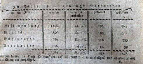 Statistik der Katholiken 1819 im Eichsfeld