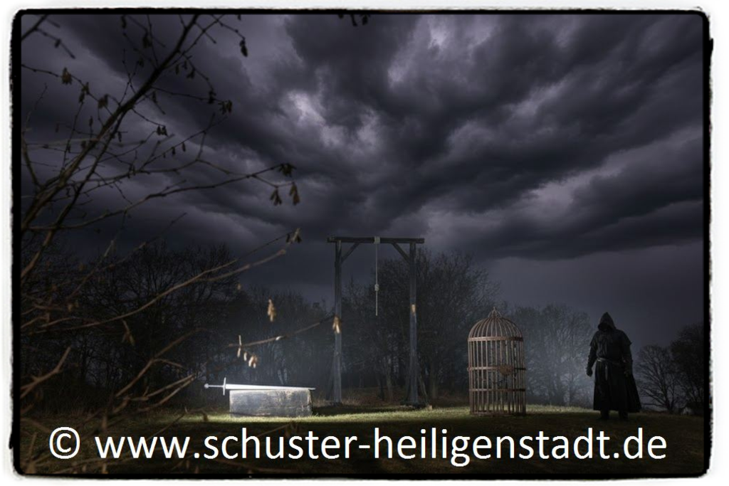 Quelle: Johannes Müller: „Eichsfelder Tageblatt“ 1922, eigene Aufzeichnungen - Bild: Der Galgenhügel 2026 mit den üblichen Henkersutensilien (KI bearbeitet) © Thomas Schuster Heiligenstadt