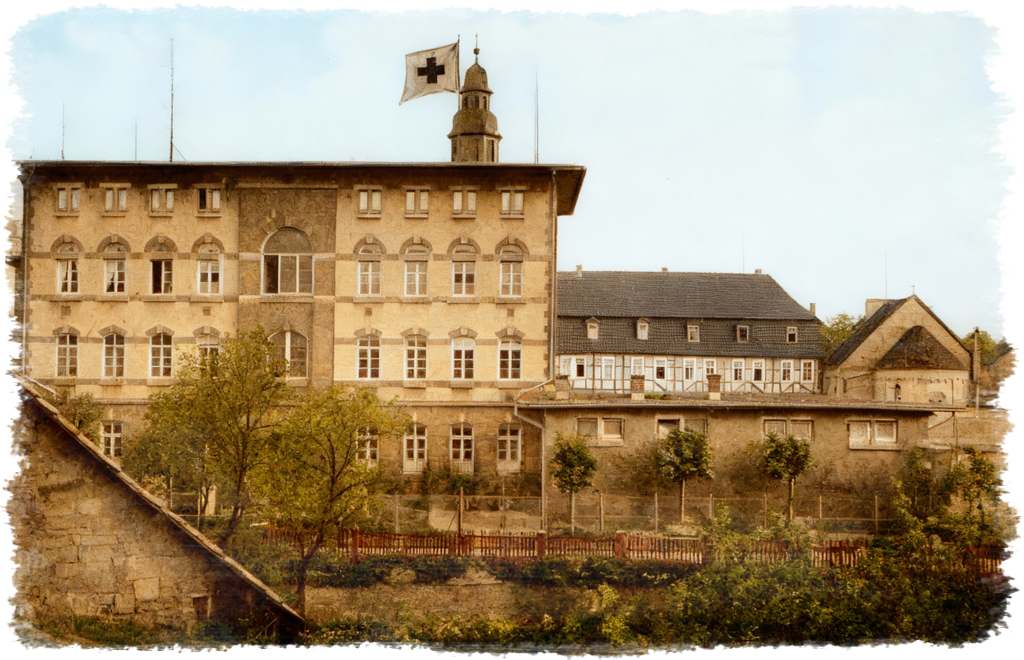 Quelle: Eichsfelder Heimathefte 4/81, Helmut Godehardt: „Das Wüten der Cholera auf dem Eichsfeld im 19. Jahrhundert“ - Bild: Krankenheilanstalt Heiligenstadt um 1900 (Postkarte aus dem Fundus Franz Bader) bearbeitet mit KI
