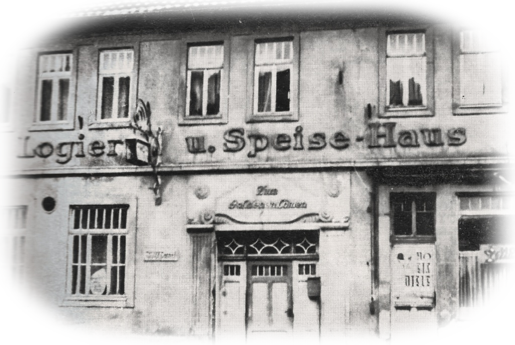 Quelle: Eichsfelder Heimathefte 1/1986 Hans Demme – Bild: Gaststätte „Zum Goldenen Löwen“ in der Wilhelmstraße 75 in Heiligenstadt in den 1950er Jahren