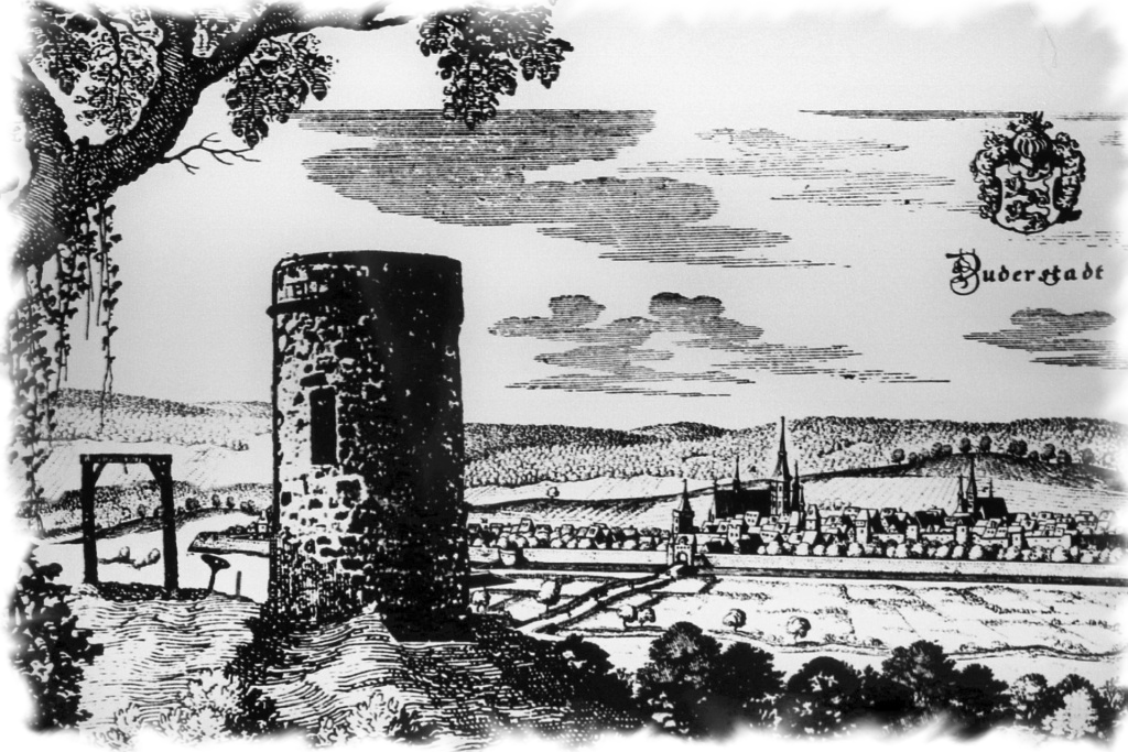 Quelle: Eigene Aufzeichnungen, Eichsfelder Heimathefte, Helmut Godehardt – Bild: Richtstätte Duderstadt an der Sulbergwarte – Zeichnung im Schützenmuseum Westerturm in Duderstadt 2016