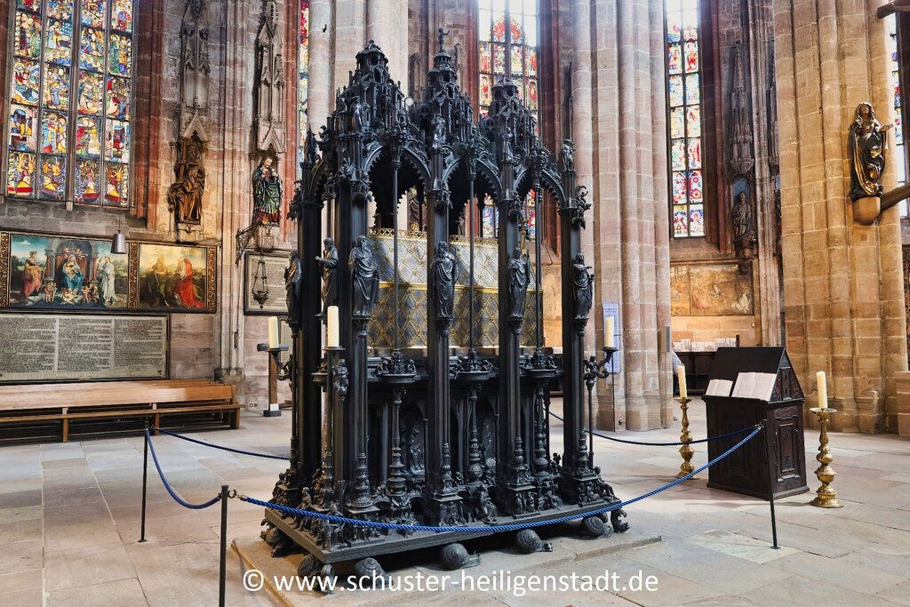 Das Grabmonument des Heiligen Sebaldus zählt zu den herausragenden deutschen Bronzeplastiken am Übergang vom Mittelalter zur Renaissance. Zwischen 1507 und 1517 schuf Peter Vischer gemeinsam mit seiner Gießerwerkstatt dieses bedeutende Werk, das durch seinen reichen figürlichen Schmuck besticht und als offenes Gehäuse den älteren Reliquienschrein umschließt.