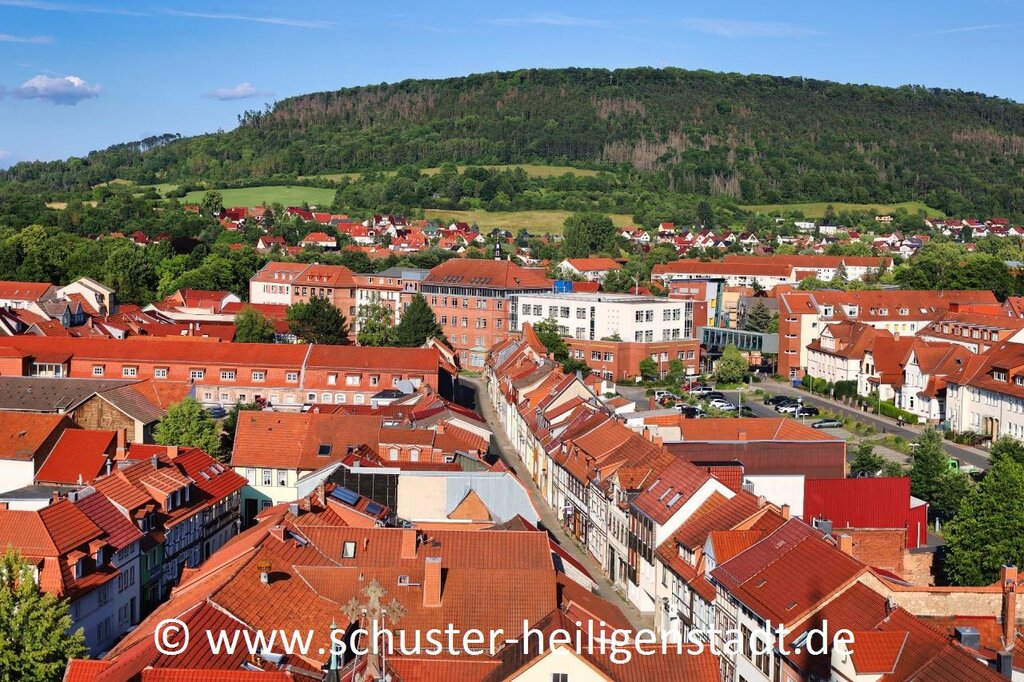 Quelle: Eigene Aufzeichnungen, Joachim Herrmann: „Welt der Slawen“ Beitrag von Karl Wilhelm Stuve – Bild: Windische Gasse in Heiligenstadt 2023 vom Kirchturm St. Ägidien. Direkt hinter den Häusern verläuft die Stadtmauer, die zum Geisleder Tor führt. (Torwache) © Thomas Schuster Heiligenstadt